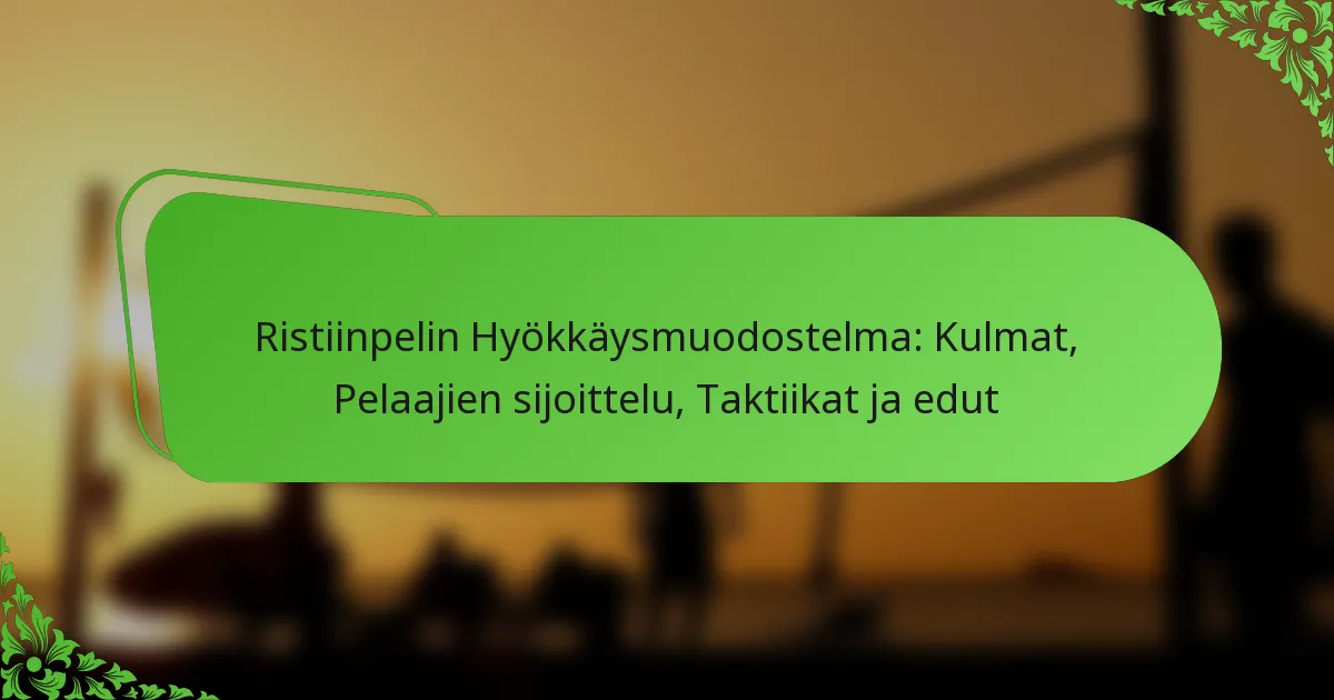 Ristikkohyökkäysmuodostelma on strateginen lähestymistapa, joka hyödyntää pelaajien sijoittumista kulmien hyödyntämiseksi ja maalintekopaikkojen luomiseksi kohdistamalla vastustajan heikkouksiin. Manipuloimalla kulmia tehokkaasti joukkueet voivat parantaa laukaisutarkkuutta ja lisätä onnistumisen mahdollisuuksia. Oikea pelaajien sijoittuminen on olennaista, sillä se maksimoi hyökkäyspotentiaalin samalla kun se varmistaa valmiuden puolustuksellisiin vastatoimiin.