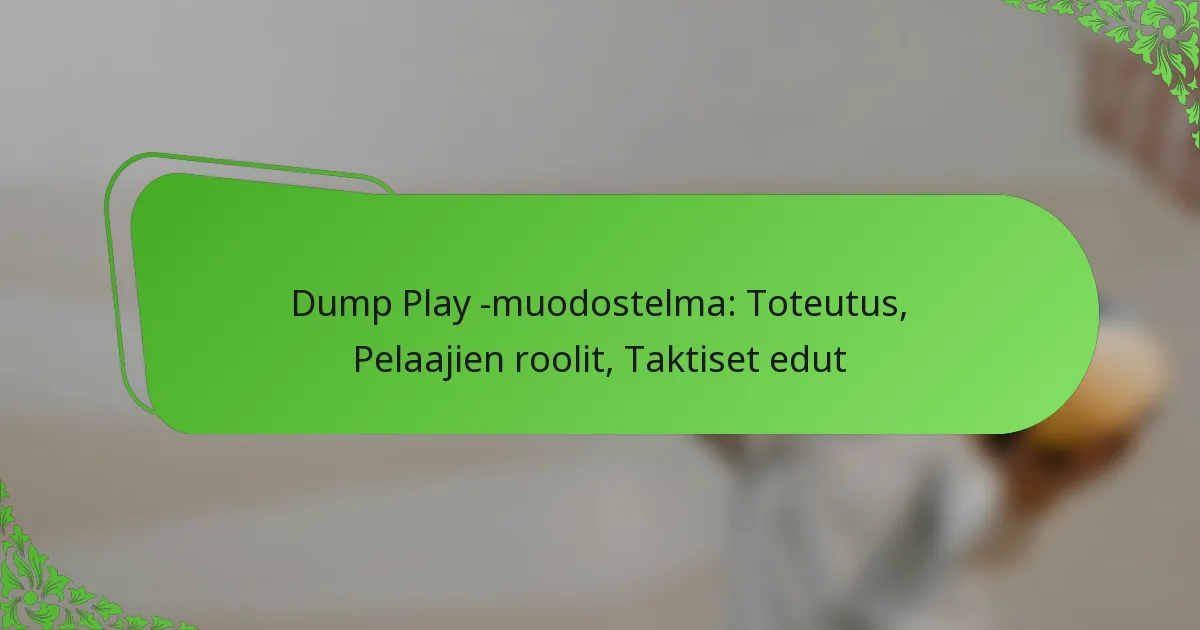 Dump Play -muodostelma on strateginen lähestymistapa joukkueurheilussa, joka korostaa nopeaa palloliikettä ja pelaajien sijoittamista. Toteuttaakseen sen tehokkaasti joukkueiden on ymmärrettävä jokaisen pelaajan roolit, seurattava strukturoitua prosessia ja vältettävä yleisiä sudenkuoppia.