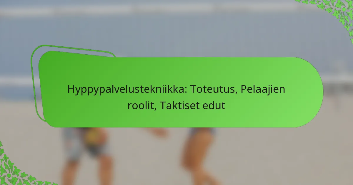 Hyppypalvelus on dynaaminen ja tehokas tekniikka lentopallossa, joka yhdistää voimakkaan hypyn ja syötön, mikä lisää pallon nopeutta ja pyörintää. Tämä taito ei ainoastaan haasta vastustajien vastaanottoa, vaan myös parantaa joukkueen kokonaisvaltaista hyökkäysstrategiaa, tehden siitä elintärkeän osan kilpailupelaamista.