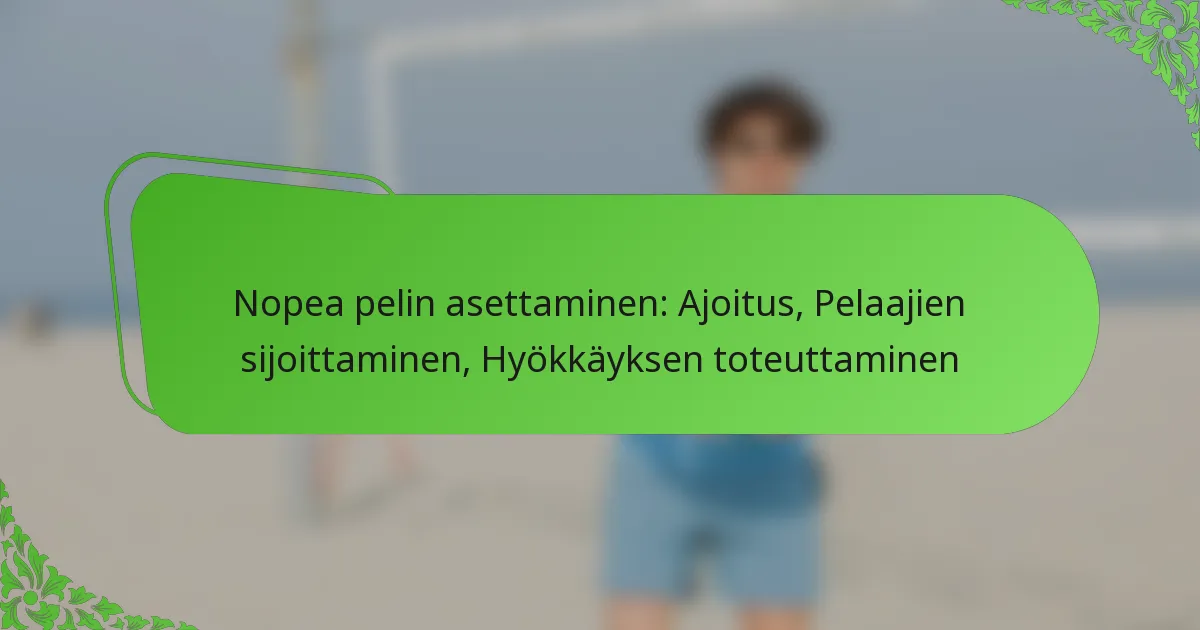 Tehokas pelaajien sijoittaminen nopeissa pelisuunnitelmissa sisältää strategista kohdistamista ja ajoitusta hyökkäyksen toteutuksen maksimoimiseksi. Keskeisiä strategioita ovat muodostelmien ymmärtäminen, roolien selkeä määrittely ja yleisten virheiden välttäminen viestinnän ja suorituskyvyn parantamiseksi.